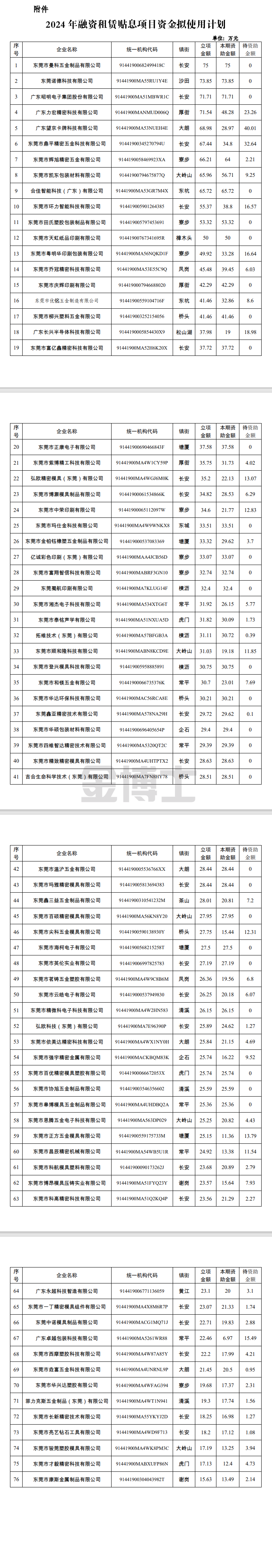 關于2024年東莞市融資租賃貼息項目資金擬使用計劃的公示